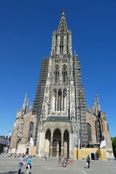 Exakt 161,53 Meter misst der Turm des Ulmer Münsters. Dadurch ist er dem Himmel näher als jede Kathedrale und jeder Dom der Welt. Über 200 Jahre wurde am Ulmer Münster gebaut: von 1377 bis 1543. Im Jahr 1530 entschied sich die Ulmer Bürgerschaft für die Einführung der Reformation. Seitdem ist das Münster eine evangelische Kirche. Nach einer langen Pause nimmt die Münsterbauhütte 1844 ihre Arbeit wieder auf. Als Bürgerkirche gab es in Ulm nie einen Bischof oder einen Landesfürsten. Allein die Bürgerinnen und Bürger der Stadt bauten bzw. zahlten dafür.