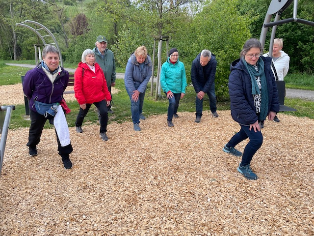 Bereits im 3. Jahr führt Ina Krauter kleine Wanderungen mit leichter und vielfältiger Bewegung durch die Weinberge, Streuobstwiesen und den Wald am Ortsrand.