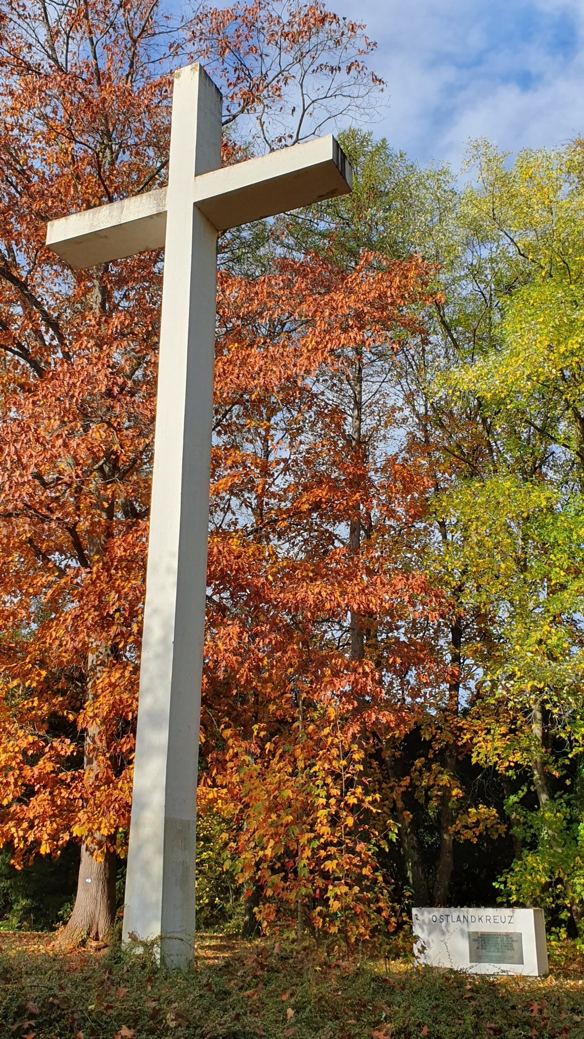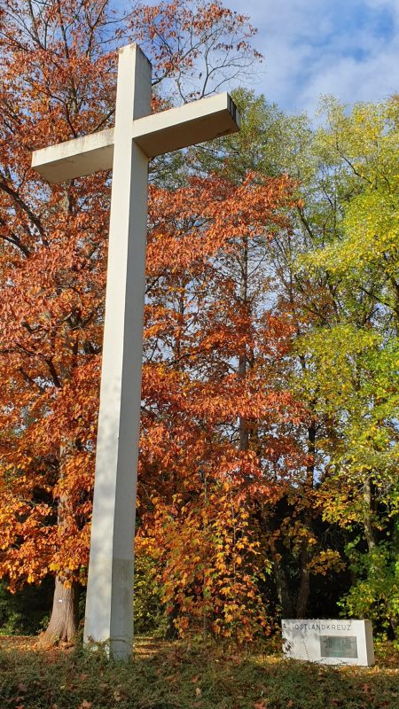 Vom Bahnhof Winterbach ist ab 10:05 Uhr zuerst der Ort zu durchqueren. Es geht über die B 29 und dann durch Obstbaumwiesen in Kehren hoch zum Ostlandkreuz, einem markanten Denkmal für die Vertriebenen des zweiten Weltkrieges.