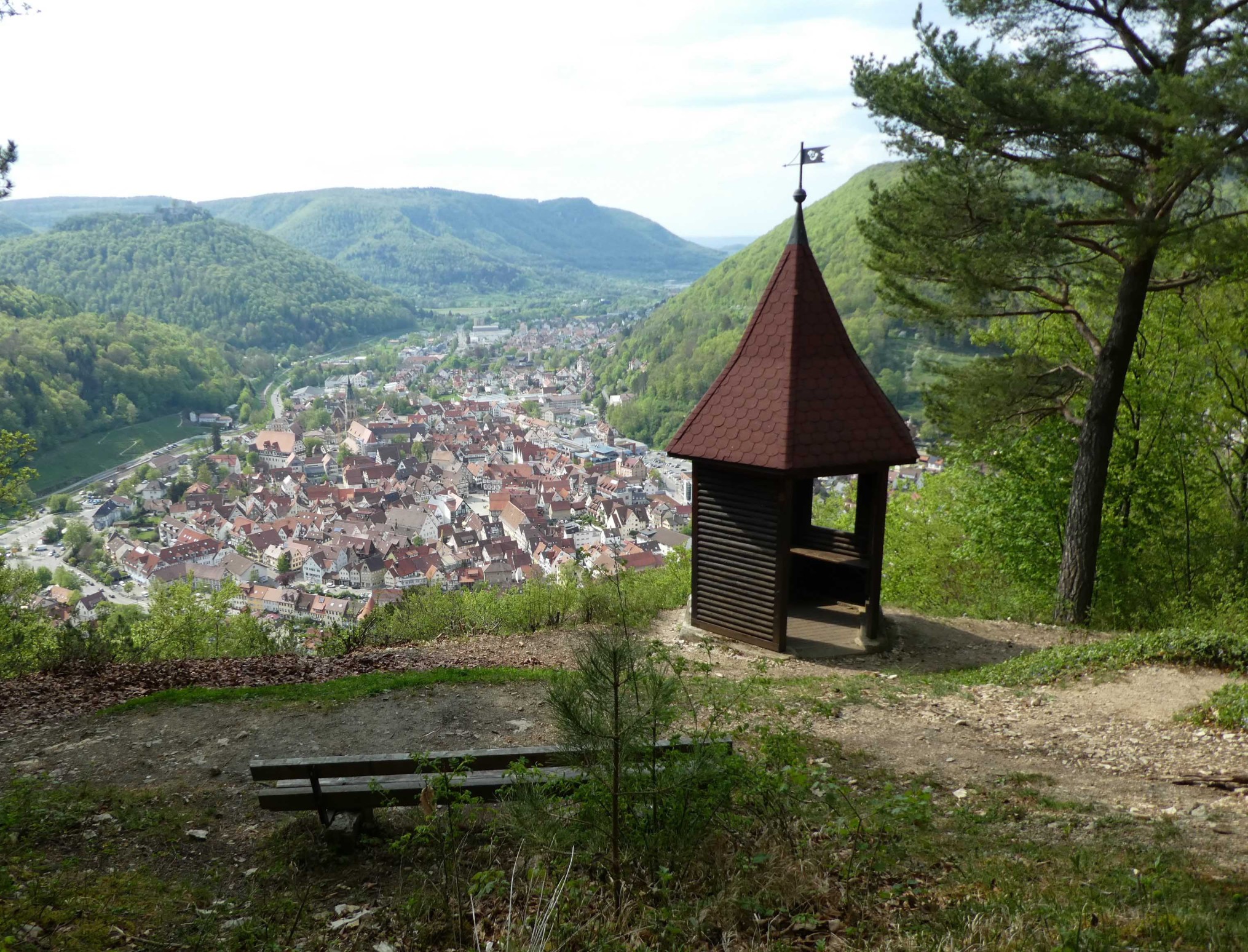 Blick vom Michaelskäppele auf das Endziel Bad Urach