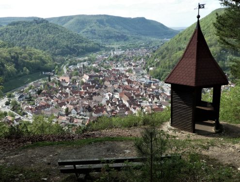 Blick vom Michaelskäppele auf das Endziel Bad Urach. Foto Fritz W. Lang