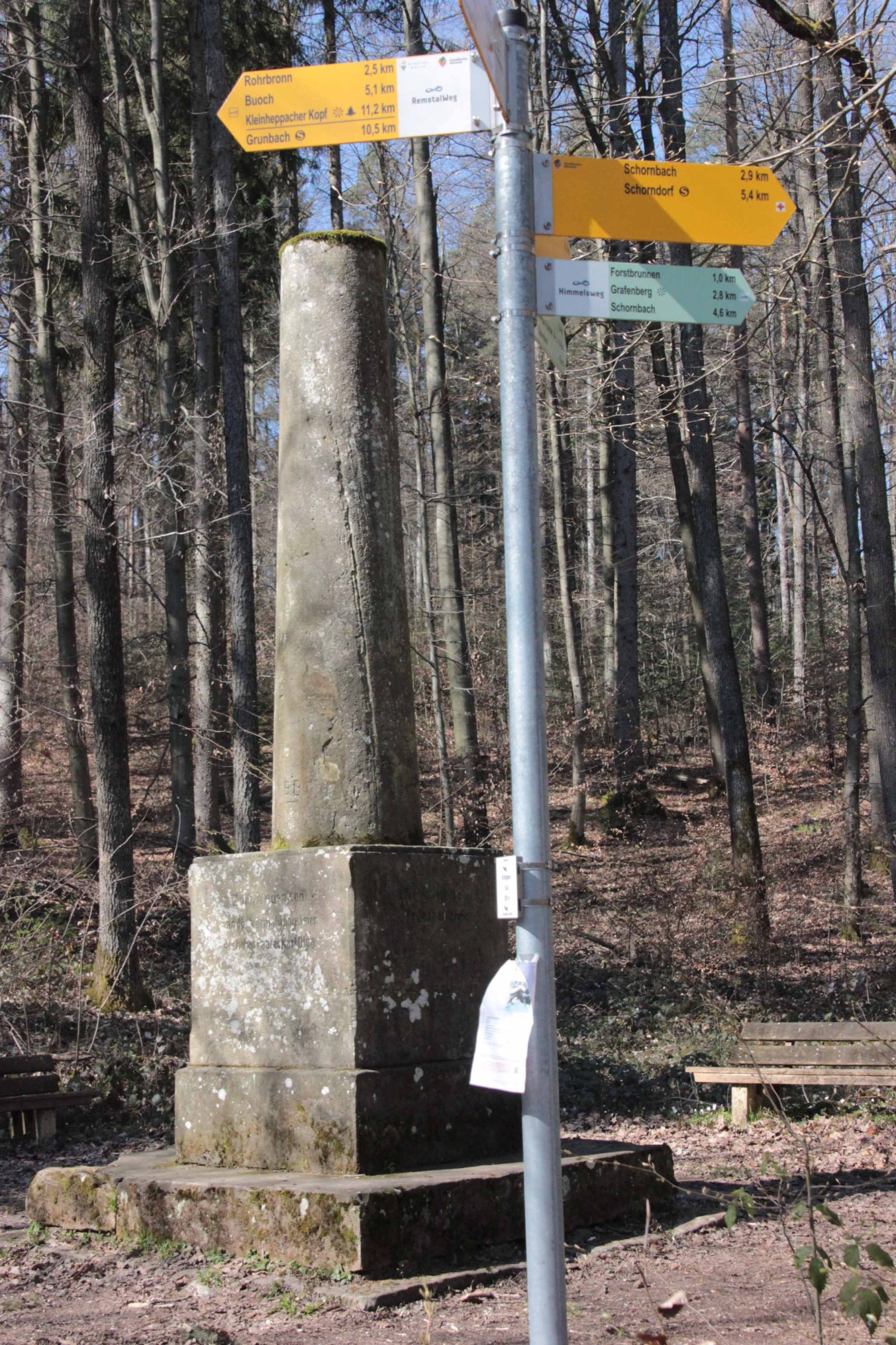 nach Schorndorf, weiter zum Grafenberg. Dort ist eine kleine Pause geplant, um die Aussicht zu genießen. Weiter geht es zum Forstbrunnen und den Wellingtonien, dem Königstein, dann nach Mannshaupten und zurück nach Schornbach.