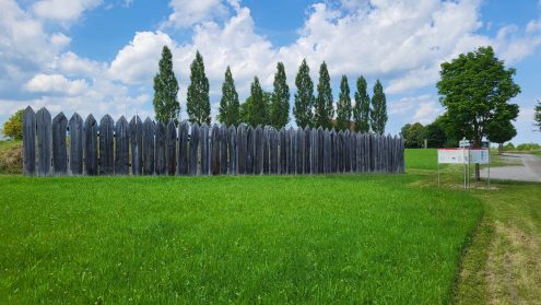 Am Ortsausgang besichtigen wir die Nachbauten des Limes und informieren uns an den Schautafeln. Diese berichten auch von einer örtlichen Räuberbande zu Ende des 18. Jahrhunderts.