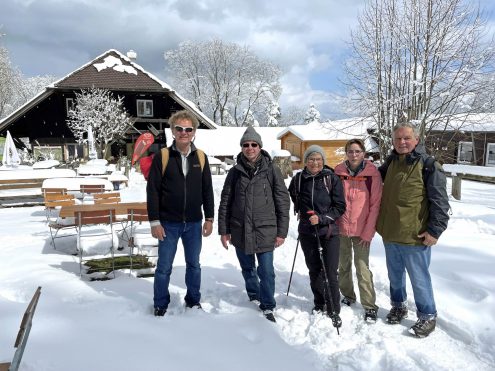 Nach 20 km Marsch in tiefem Schnee waren wir wieder in Hausen und blickten gegenseitig in leicht erschöpfte, aber durchaus zufriedene Gesichter. Die Resonanz der Teilnehmer war so wohlwollend, dass der Wanderführer jetzt über weitere Angebote in diesem Format (höher, weiter, schwerer) nachdenkt.