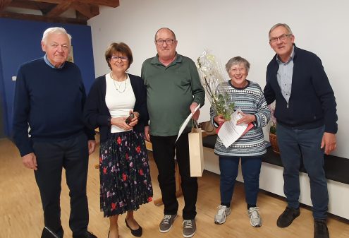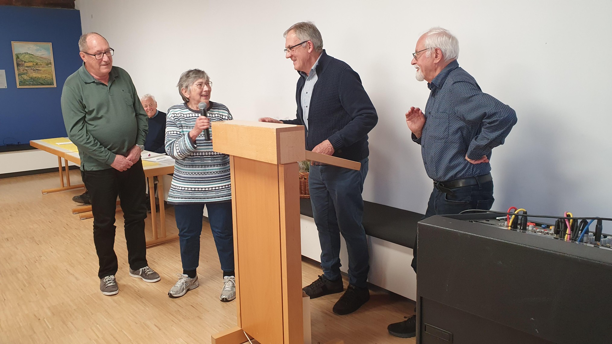 Zur Ehrung standen vier Mitglieder an: Irmgard Fischer für 60 Jahre und Heike Bareis und Olga Fischer für jeweils für 50 Jahre sowie Rainer Blum für 40 Jahre Mitgliedschaft. Nur Olga Fischer und Rainer Blum konnten anwesend sein.