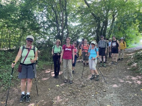 An einem sonnigen Sommertag trafen sich die Kultur der Aureliuskirche in Hirsau und die Natur des Schwarzwaldes in idealer Kombination. 21 Personen fanden sich bis Weinstadt in der S-Bahn zu unserer Wandergruppe zusammen. Dank Margrets Fuß in der Tür des „Zügle“ von Pforzheim nach Hirsau kamen wir pünktlich bei der Aureliuskirche in Hirsau an. Herr Armbruster führte uns in die dunkle Kirche. Sie bildete im 11. Jahrhundert das Zentrum des dem Heiligen Aurelius gewidmeten Klosters und die Keimzelle des danach gegründeten Klosters St. Peter und Paul, das den Ruhm von Hirsau begründete.