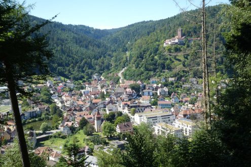 Nach der Rast folgten wir dem breiten Waldweg mit schönen Ausblicken auf Bad Liebenzell abwärts bis zum Waldfriedhof um danach gleich wieder nach Monakam bergauf zu schnaufen. Am Ortsende von Monakam verlockte ein kleiner Biergarten zu einer kurzen Trink- und Regenerationspause.