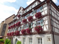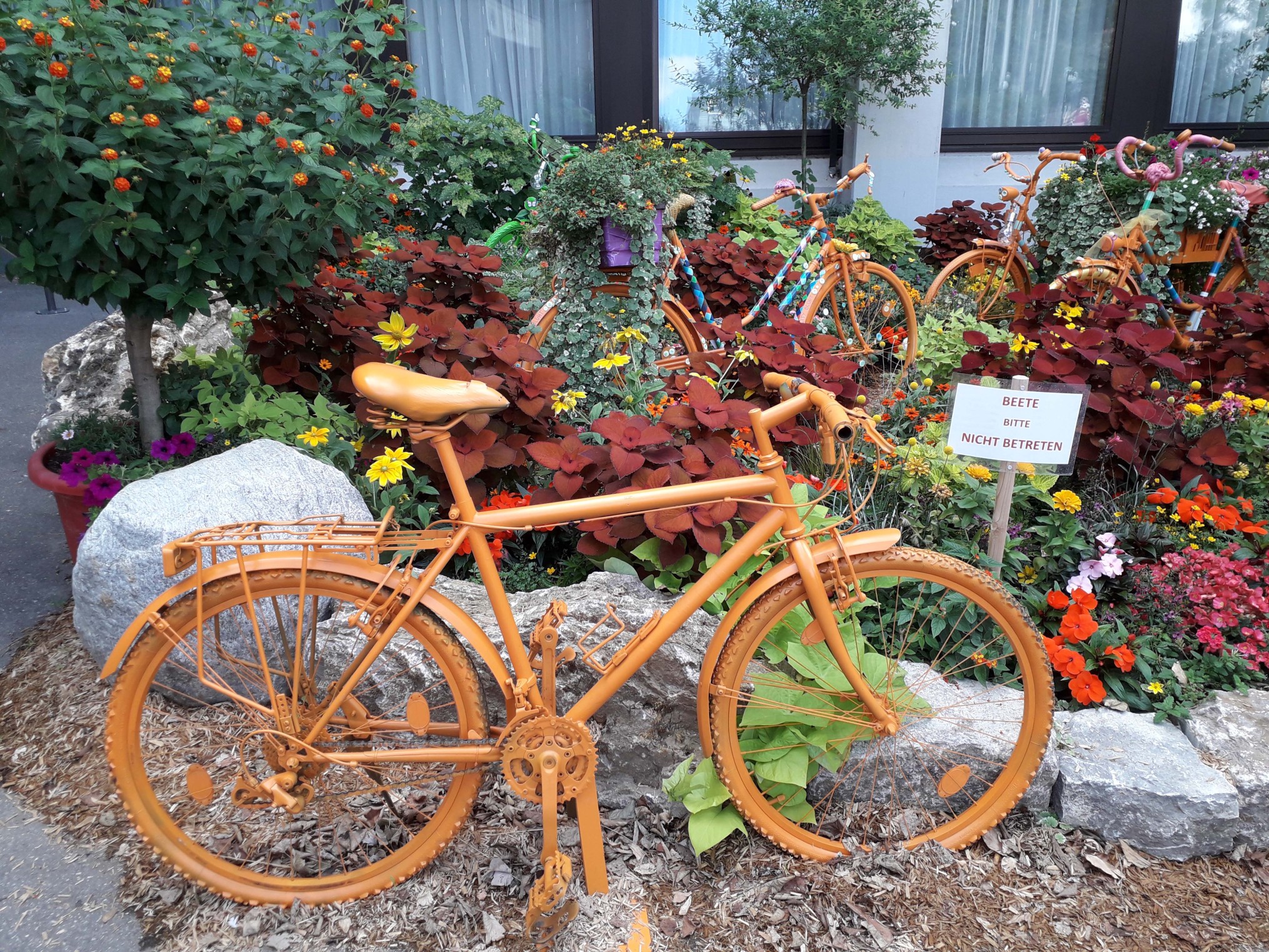 MIt einer Blumenpracht präsentiert sich die Altstadt von Aalen unter dem Motto „rund ums Fahrrad“