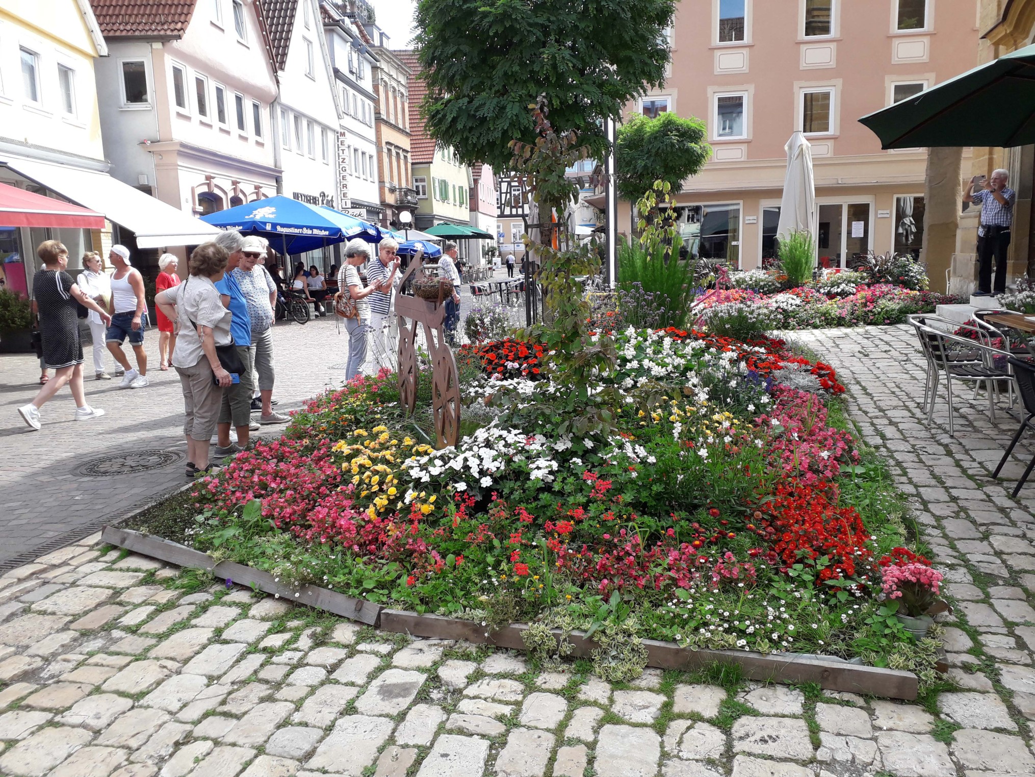 „Hoffentlich sind die Züge pünktlich und hat die Blumenpracht auf den Plätzen inAalen nicht zu sehr unter der Hitze gelitten“? Diese Fragen stellten sich 16 unternehmungslustigen Teilnehmer am Bahnhof in Grunbach. Aber alles gut. Pünktlich die Bahn und herrlich bunt und frisch die Blumen.